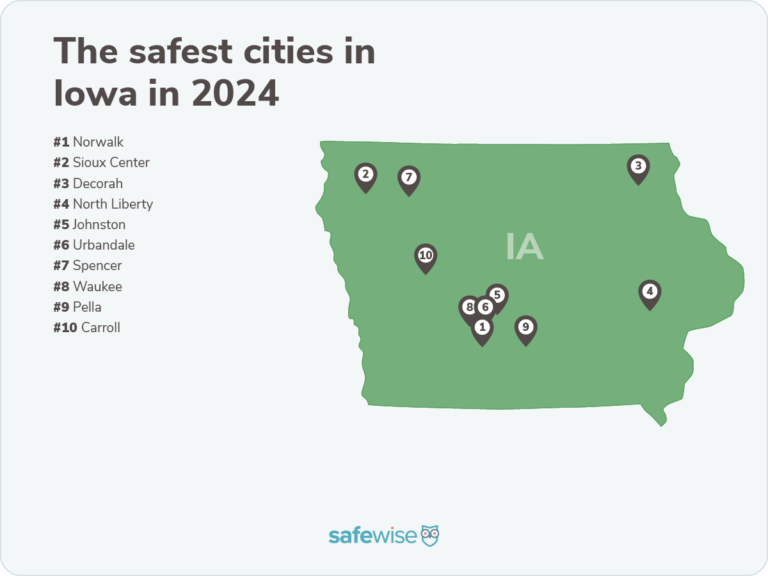 Violent crime and property crime rates in The Hawkeye State are lower than the national averages. Iowa has the twelfth-lowest violent crime rate and seventh-lowest property crime rate in the US. And if you live in one of Iowa's safest cities, you enjoy crime rates that are even lower.
