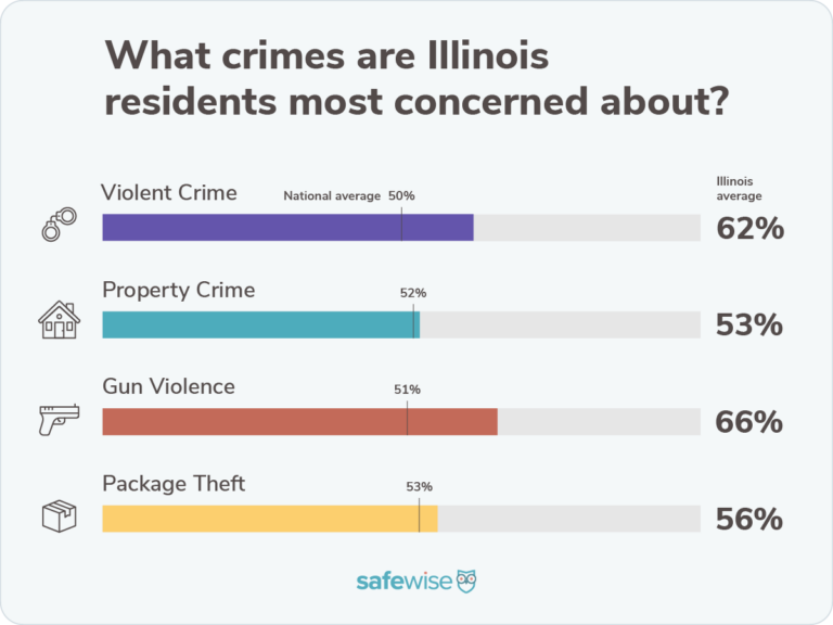 - Illinois residents worry about property crime happening to them at a rate 3% higher than the average American.
