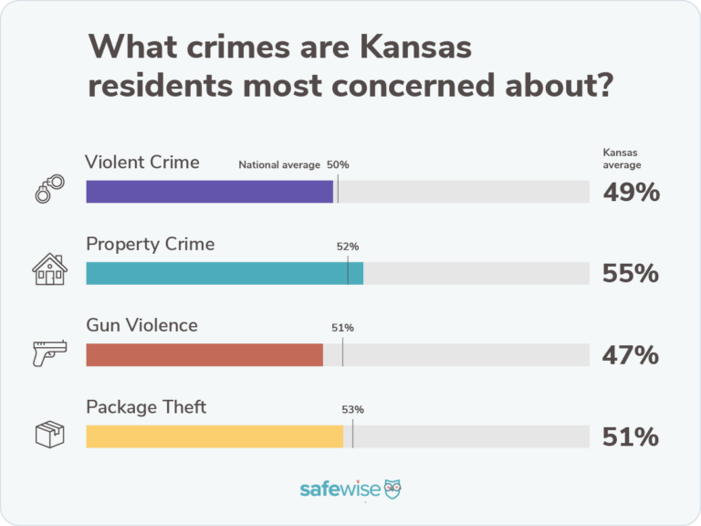 - Most Kansas residents worry about property crime (55%)—more than any other crime, but package theft is a close second at 51%.