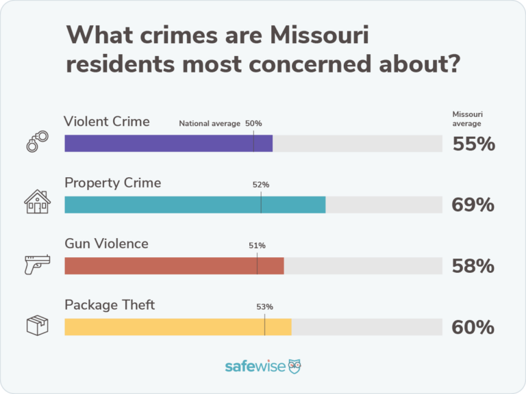 - 58% of Missouri residents cited gun violence as a safety concern—higher than the US average of 51%.