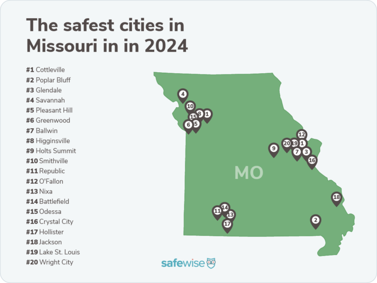 - Cottleville, Missouri's #1 city, was the only city to report zero burglaries.