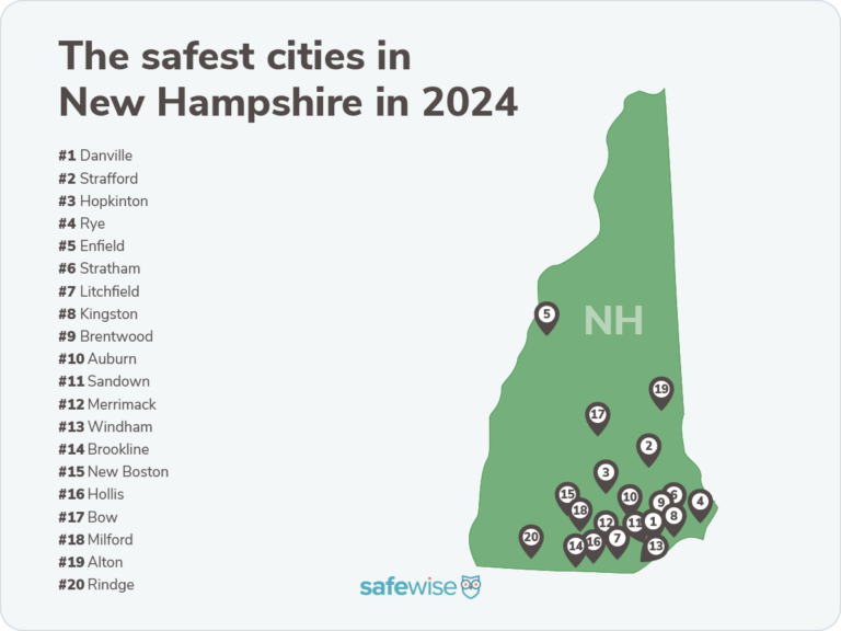 - Seven of the safest cities reported zero burglaries: Danville, Strafford, Hopkinton, Brentwood, Auburn, New Boston, and Bow.
