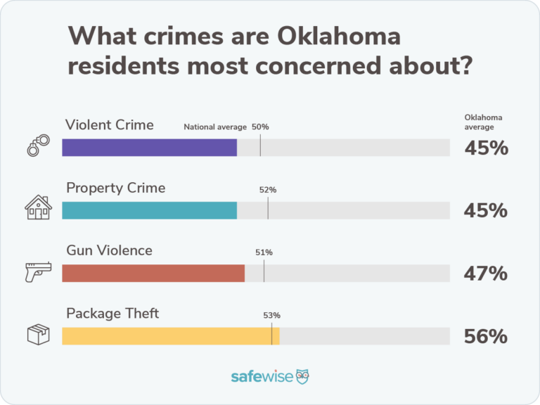 Just less than half of Oklahoma residents feel safe in their home state—similar to the average American. The Sooner State had more violent crimes compared to last year, though respondents reported less experiences with violent crime and gun violence.