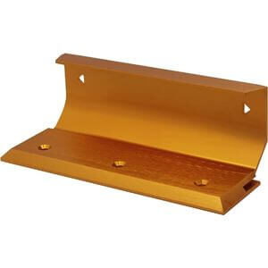 Door braces come with two main parts and are another easy install. One part screws into the floor at the base of the doors. It should be centered across where the doors open and lie flush with the molding on the bottom of the door.