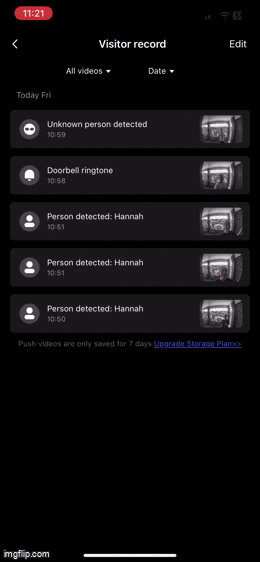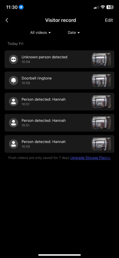 The doorbell can recognise faces with AI, and to my shock, recognised my face from a dimly lit, unflattering photo taken prior. Any notification-based automations can take about 5-10 seconds to show up once the unknown face is detected. A 'visitor record' of all the people known and unknown, can also be viewed in the app, along with a 10-second video of the visitor once they press your doorbell (stored locally). Pretty handy to have in case they try any funny business.