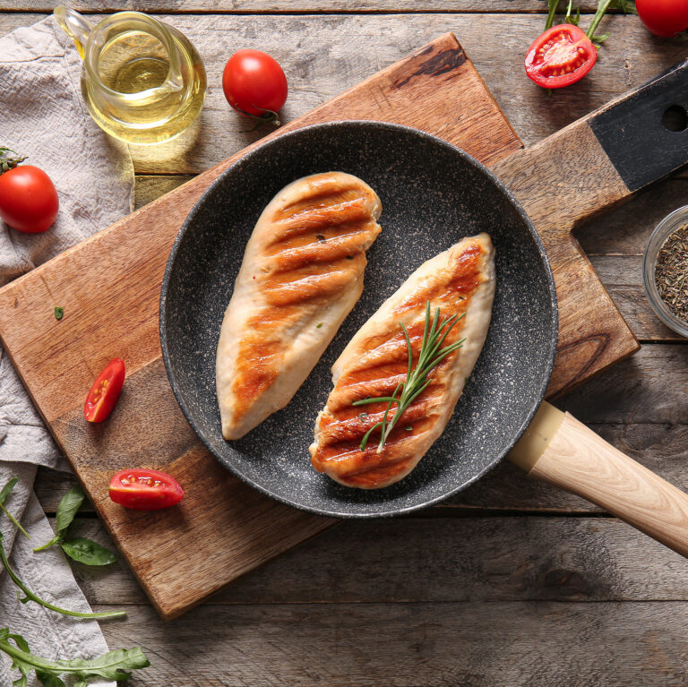 Looking to add some more protein? This chicken and tomato mash is perfect for adding meat into a meal and getting a bit of extra texture. Veggies are roasted, then added to the blender with the chicken for a delicious mashy meal.
