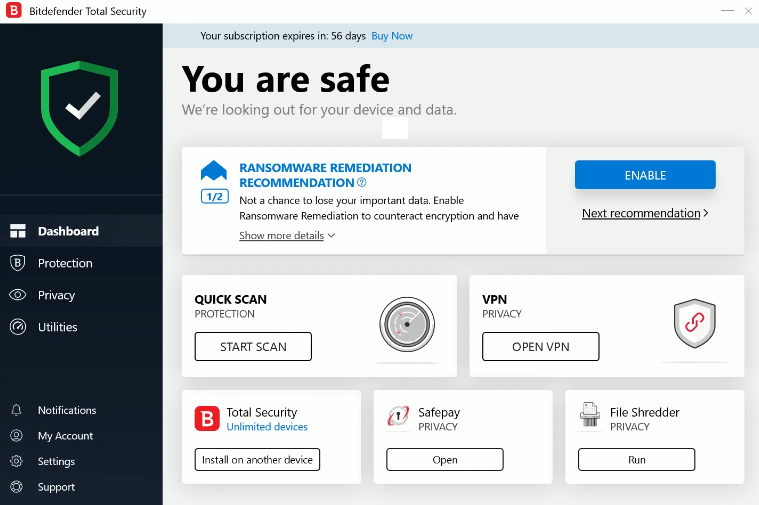If you don’t need to protect that many devices, the Bitdefender Total Security plan might be a better option. It protects five devices at $79.99 for the first year and $149.99 thereafter.