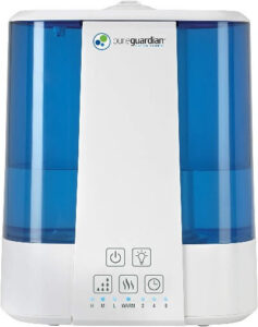 If you need a home humidifier that doesn’t need to be refilled constantly, try the PureGuardian H5225WCA. It’s a cool- and warm-mist humidifier with a 2-gallon tank. It can run for up to 100 hours before needing a refill, and the tank is made of silver-treated material to make sure mold and bacteria don’t grow inside.