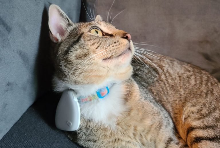 Jiobit can be used on animals that are five pounds or more. We picked the collar of a cat named Milo for our Jiobit. Milo likes to roam, so we figured he would be the perfect test subject for our Jiobit review. Milo was curious about the new bobble on his collar but soon forgot about it.