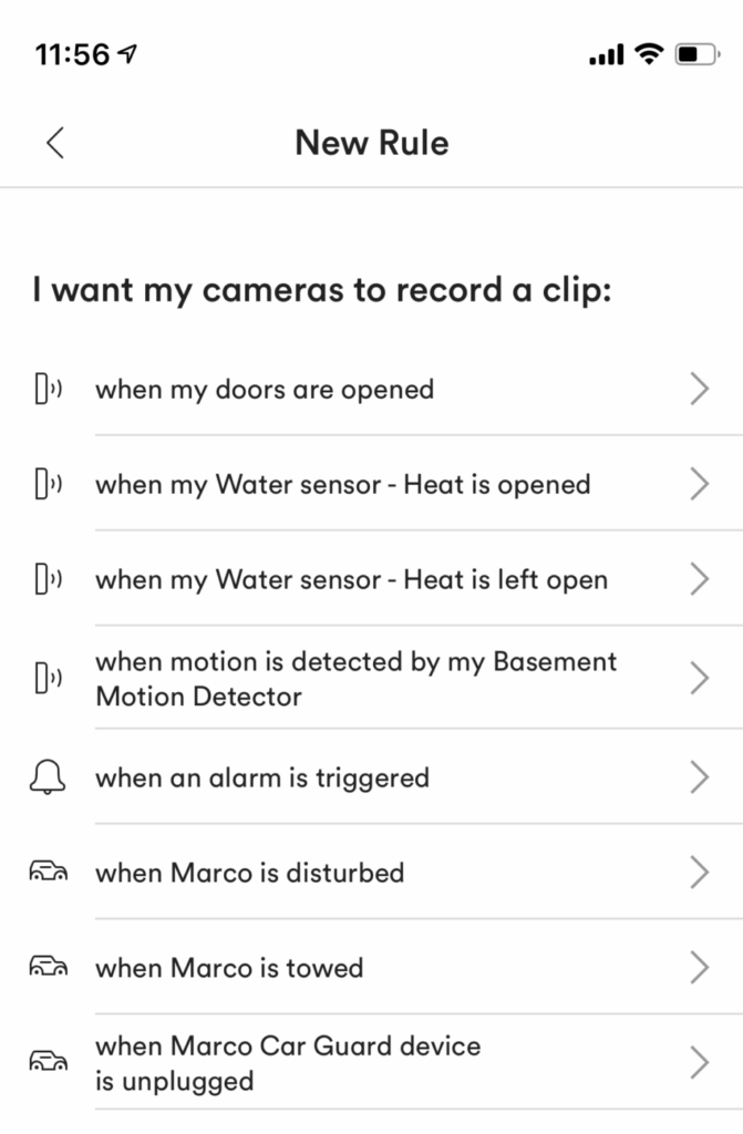 The Vivint security app comes pre-programmed with a few rules. Review them to make sure they align with your goals and expectations. Toggle any unnecessary rules into the “off” position.