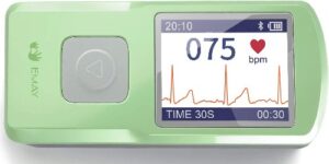 EMAY’s portable heart rate monitor records Lead 1 ECG readings. It’s a pocket-sized device that you can press to your chest, legs, hands, or wrists to get measurements almost instantly.