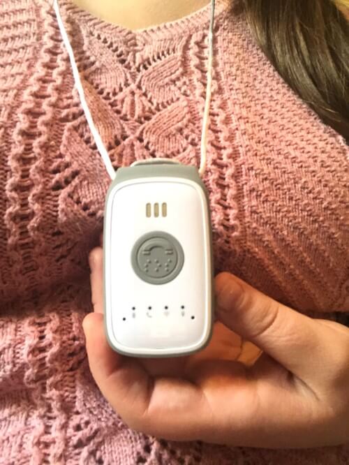 The MGMini is water-resistant too, so you can get help in the shower, when you’re swimming, or if you get caught in the rain on the way home.