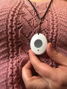 The wearable alert button has an impressive range of 1,400 feet, so you can move about your house away from the base station. You can move throughout your garden, go upstairs, or even visit the neighbors as long as it's within range of the base station.