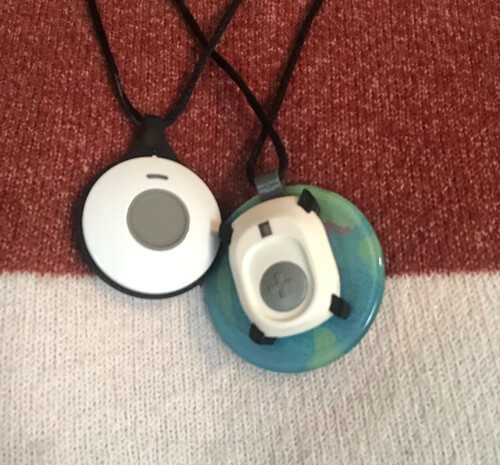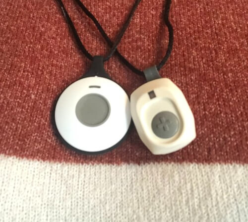 The GetSafe pendant (left) is a little larger than the Bay Alarm Medical Pendant (right). Images: Cathy Habas, SafeWise