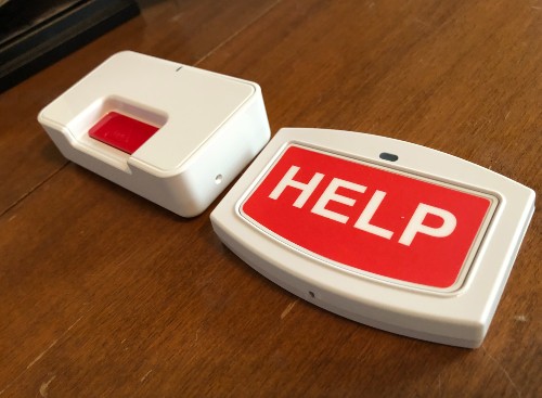 The standard wall buttons also have a different appearance. Both are about the size of a bar of soap, but the GetSafe button is bulkier. It’s mostly white with an inch-long red button, which is recessed to prevent false alarms if you accidentally bump into it.