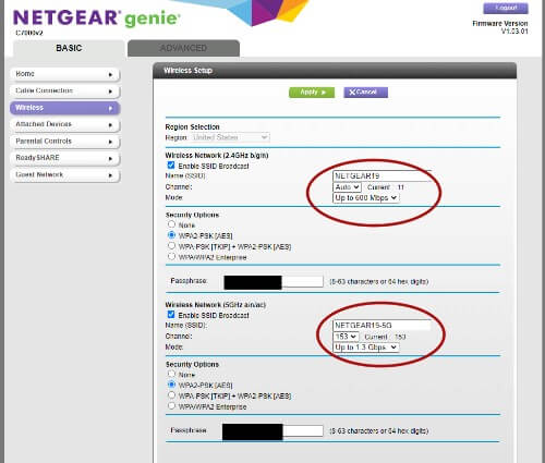 Here's where you can actually edit the SSID and your network password. Note that if you have dual-band Wi-Fi, your 2.4GHz and 5GHz connections have distinct SSIDs, passwords, and settings.