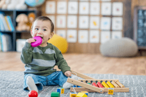 A gorgeous mobile is the centerpiece of any nursery. It’s also dangling enticingly right above a baby who can now reach for it and pull it down. Move the mobile, or raise it higher to keep it from becoming a hazard.