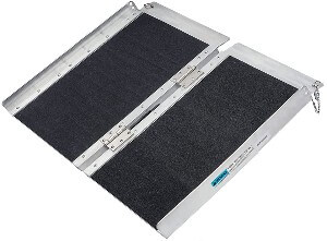The EZ Access wheelchair ramp is sturdy enough to hold 800 pounds, but lightweight enough to stow in a van or other vehicle. Its center hinges allow the panels to separate so you can fit it easily into small spaces or create a ramp to narrow entrances. You can get the EZ Access in seven sizes, each as lightweight and sturdy as the next.