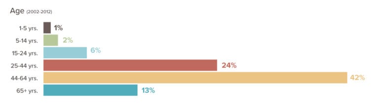 - Folks over the age of 45 have the highest incidence of CO poisoning (55%).