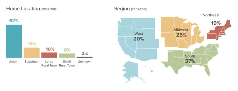 - Surprisingly, rural locales are least afflicted with accidental CO poisoning—only 18% of incidents occurred in rural towns (compared to 62% in urban cities and 19% in the ‘burbs).