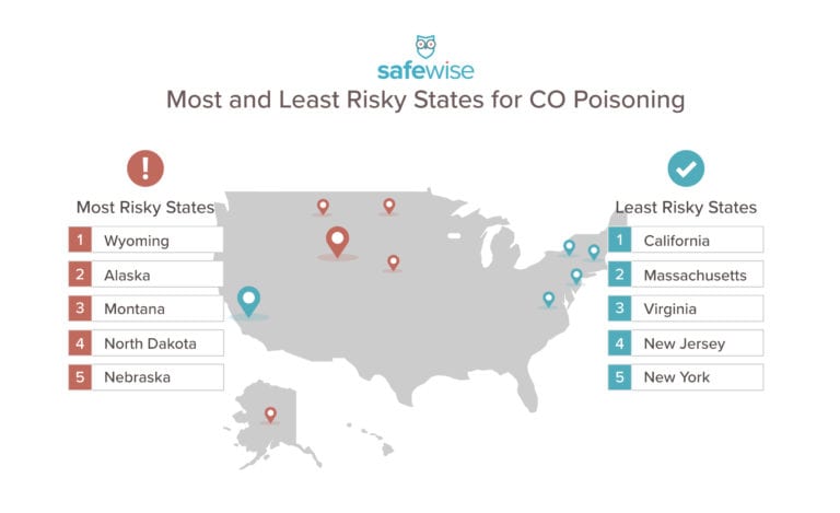 Carbon monoxide (CO) poisoning is the second-leading cause of poisoning death after drugs. Find out if you’re at risk and how to prevent it. With winter upon us—SafeWise decided to learn more about Carbon Monoxide poisoning patterns across the country. We looked into which states have the highest and lowest death rates, what factors increase your risk, and how you can keep yourself safe.
