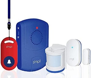 Our favorite door chime for seniors is the SMPL Alerts 4-in-1 kit because the caregiver can carry around its alarm pager, and there’s a motion sensor and wearable call button to round out the package.