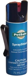 Don't count on this keeping bears away, but it'll at least make an aggressive dog pause long enough to stop its charge or let go of your dog.
