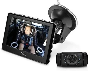 Another option that provides similar safe monitoring results for the driver is a baby car mirror. Baby car mirrors make it easy to check on the baby with a simple glance in the rearview mirror. They are also significantly less expensive than baby car monitors, but that cost savings comes with very limited functionality compared to a camera monitor.