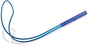 Pool lifeguards use ring buoys and life hooks. They also carry a pointed flotation device called a rescue can, rescue buoy, or Burnside buoy. A lifeguard’s rectangular flotation device is called a rescue tube. Oh, and don’t forget the whistle.