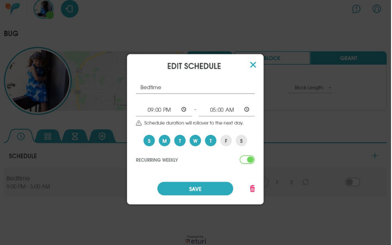 We love that you can turn off the schedule with the toggle of a switch, just in case you decide to let your little one stay up past bedtime or get a nibblet of more screen time as a treat. When the special time is over, just toggle the schedule back on. No need to start from scratch.