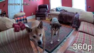 The Furbo will make a squeaky toy sound and then fire out a treat. Soon, your dog will start to associate the squeaky sound with an impending treat launch and will come to the Furbo. This makes it easier to call your dog to the camera when you want to make sure they’re okay. Alternatively, you can replace the squeaky sound with your own 6-second recording.