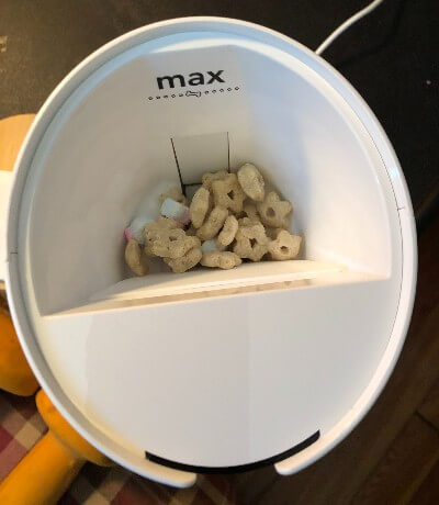 You need to do a little training with your dog to help them understand the treat-tossing game, but Furbo gives you instructions and resources to make this easy. You start by letting your dogs watch you load the treats into the Furbo, and then you feed them a couple of treats by hand near the Furbo. Finally, you toss the treats on the ground while standing next to the Furbo.